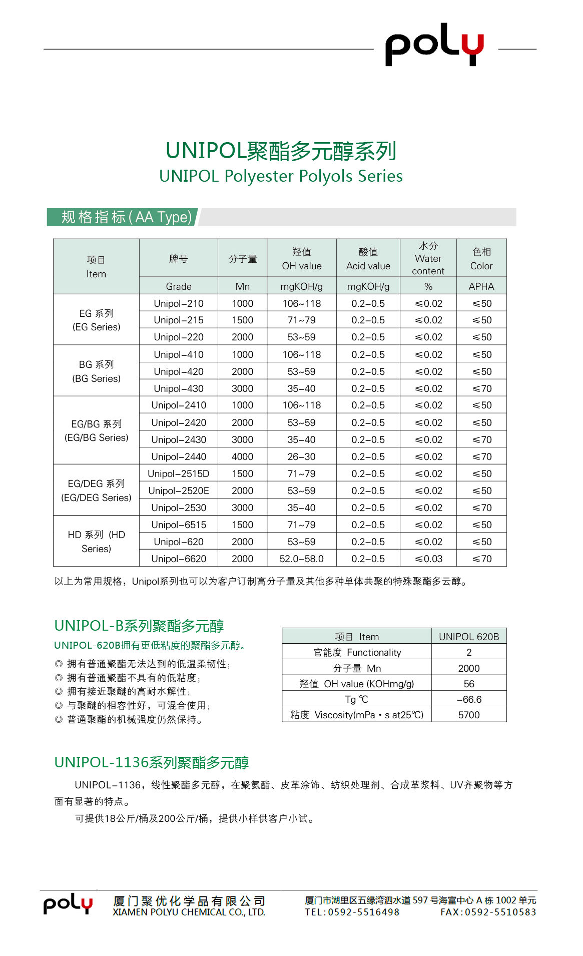 UNIPOL聚酯多元醇系列 UNIPOL