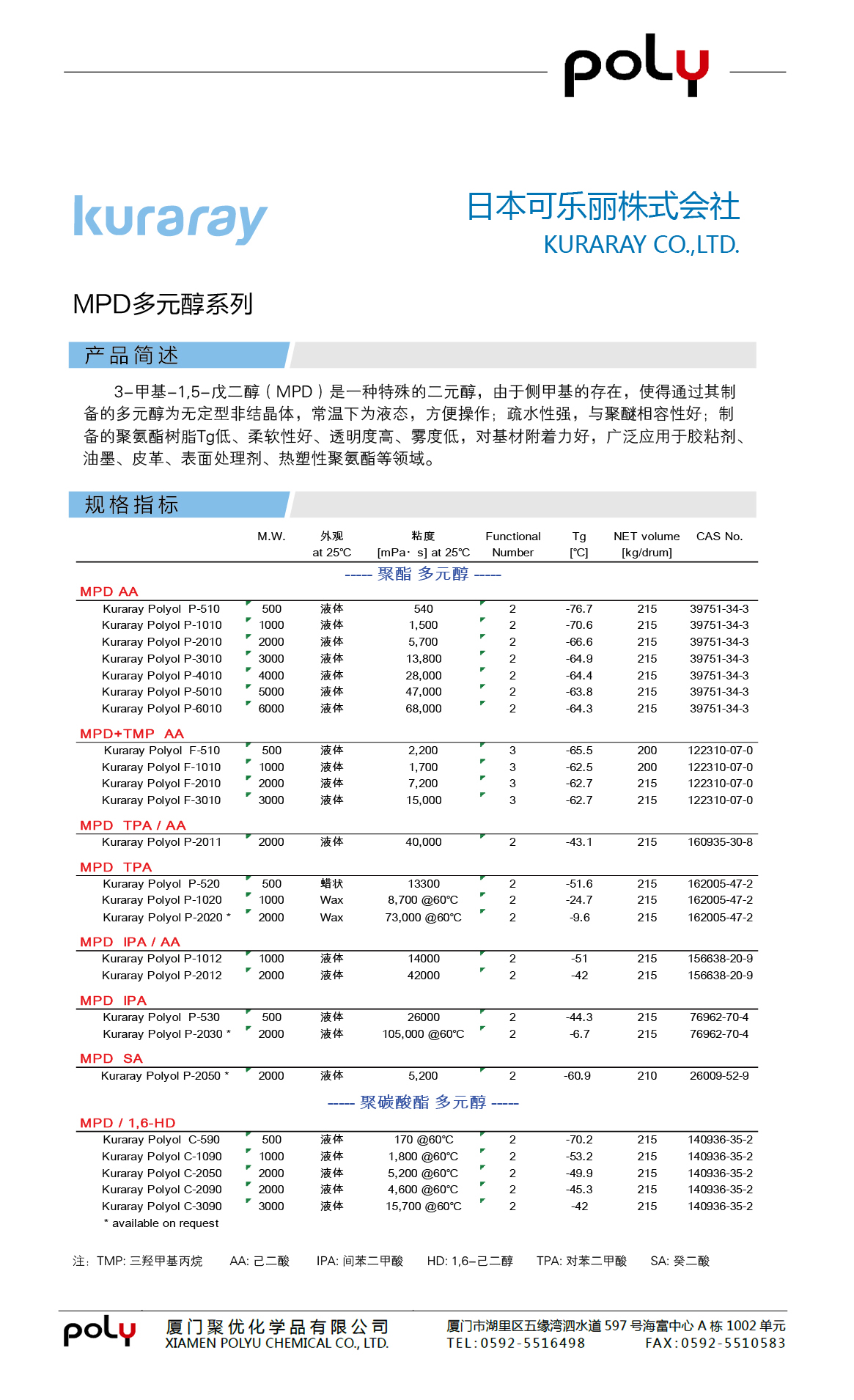 > 聚氨酯原料 > MPD多元醇系列