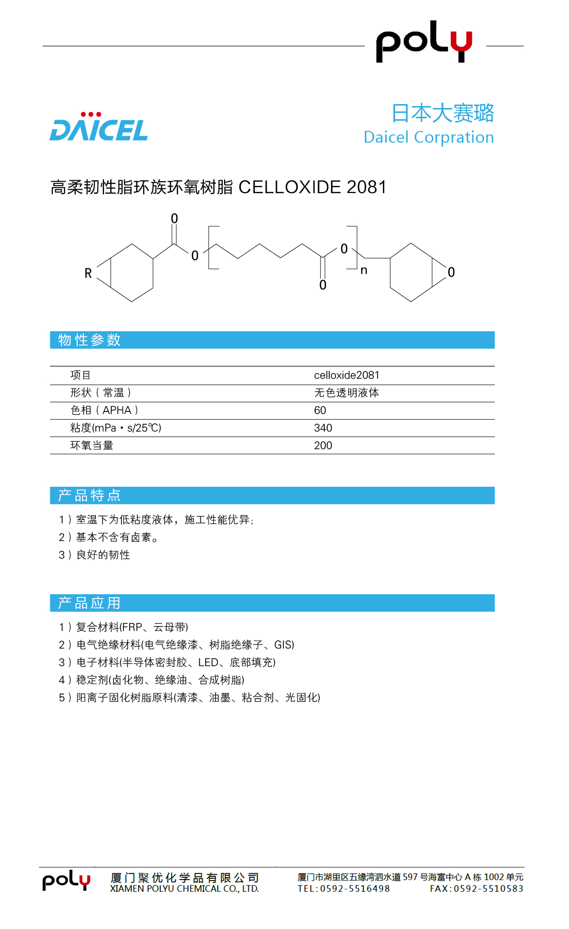 > > 高柔韧性脂环族环氧树脂CELLOXIDE 2081