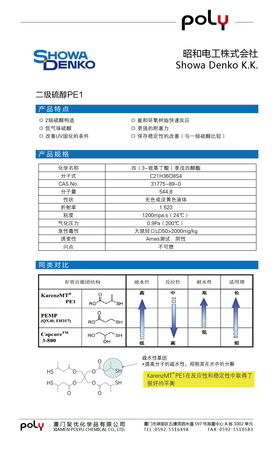 二级硫醇 Polyfunctional Mrcaptan