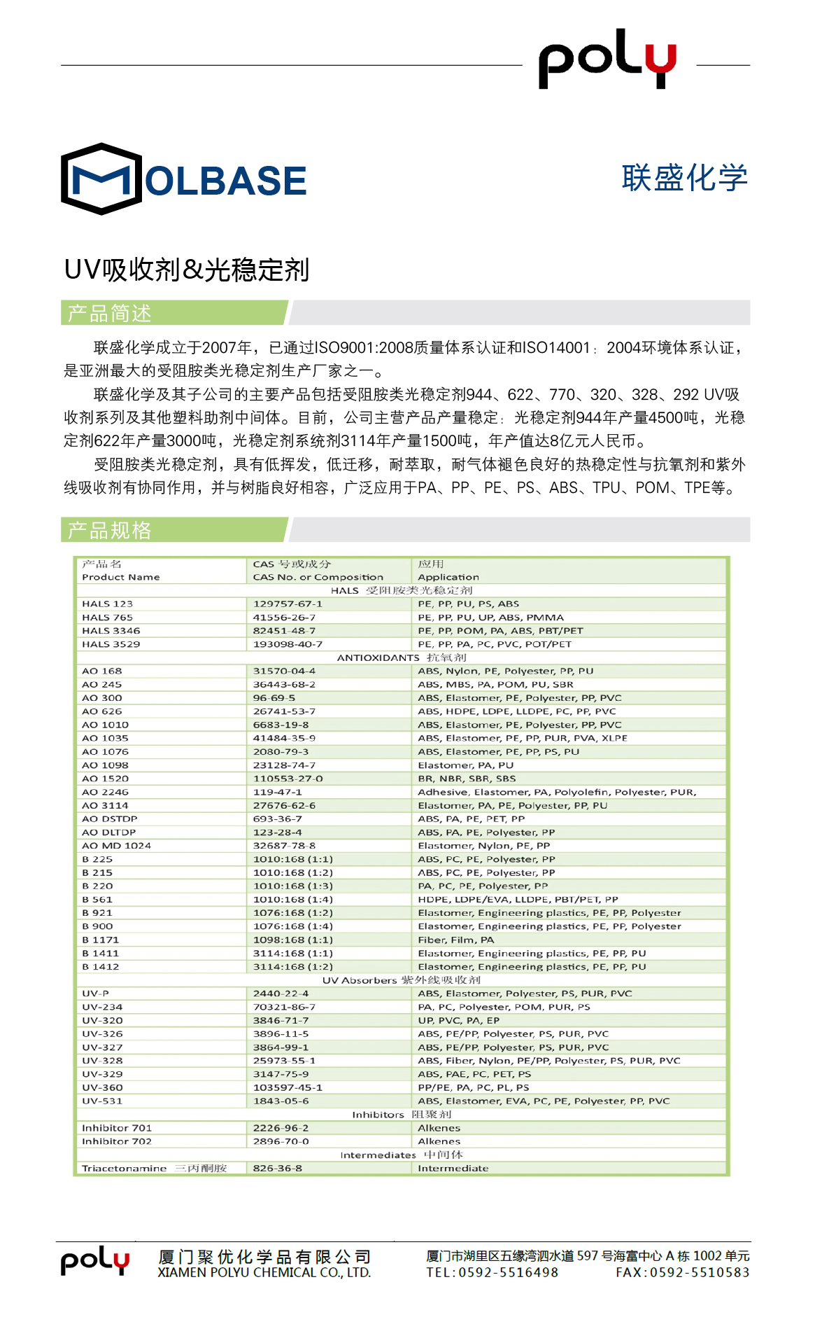 UV吸收剂&光稳定剂 UV Absorbers&Light Stabilizers